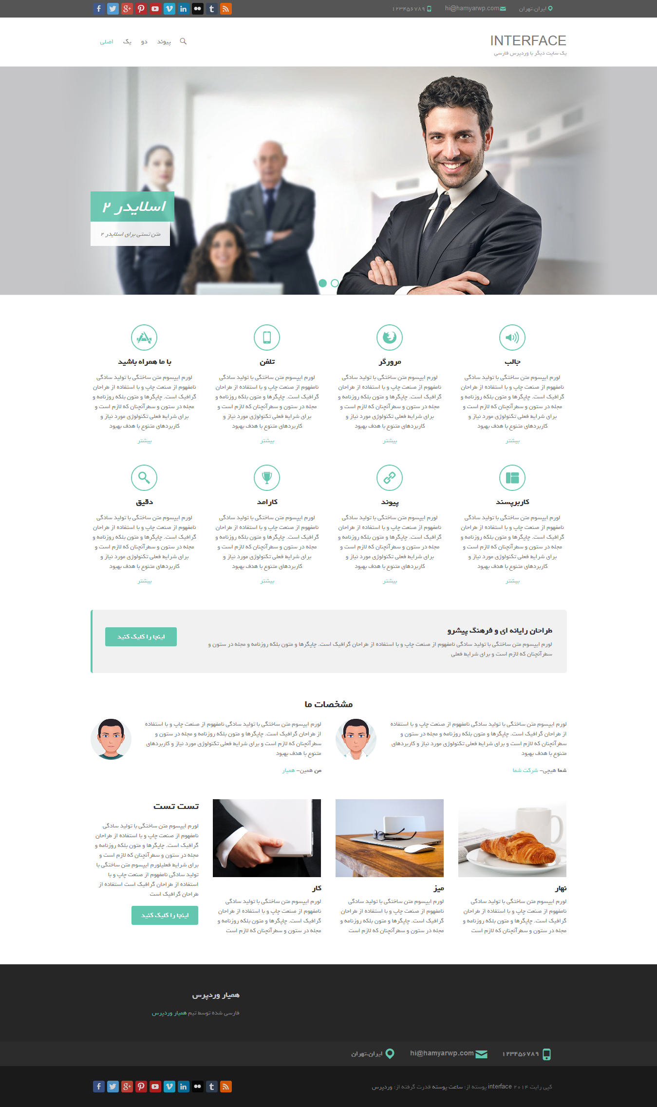 پوسته زیبای Interface یکی از پوستههای زیبای شرکتی بوده که توسط همیار وردپرس به زبان شیرین فارسی ترجمه شده است . شما میتوانید برای سازمان یا شرکت خود از این پوسته استفاده نمایید .